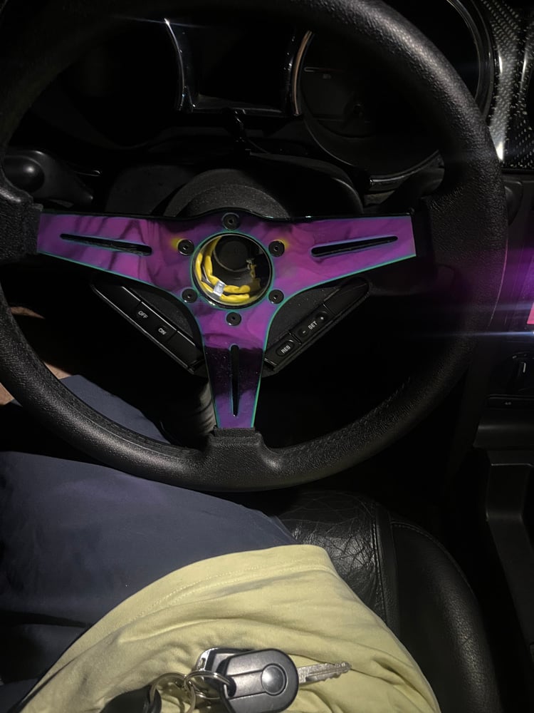 -Please check pictures before purchasing. Works with most 6 bolt pattern steering wheels (350mm).